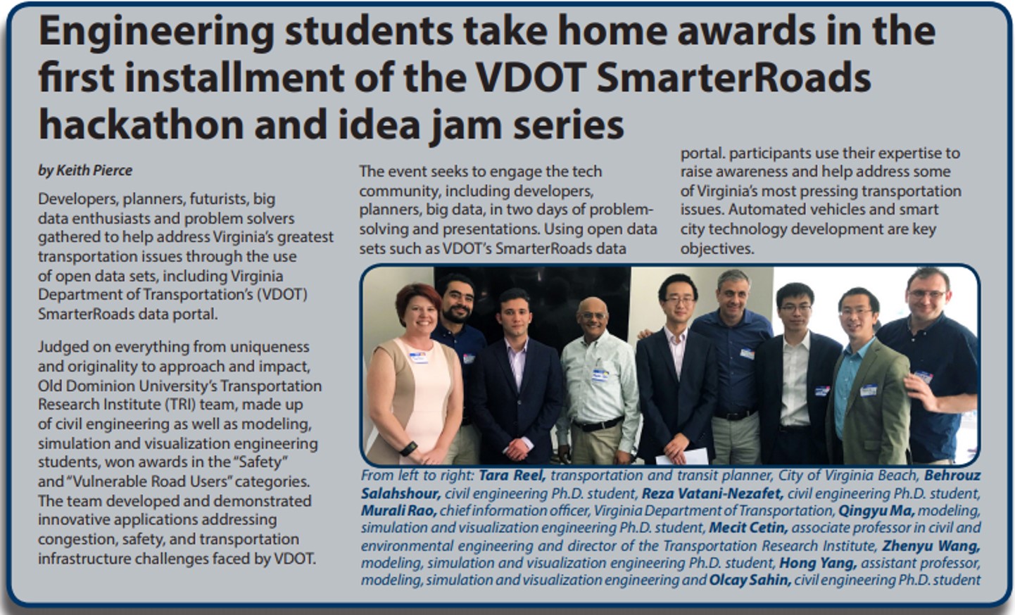 Won Hackathon at the VDOT SmarterRoads Competition