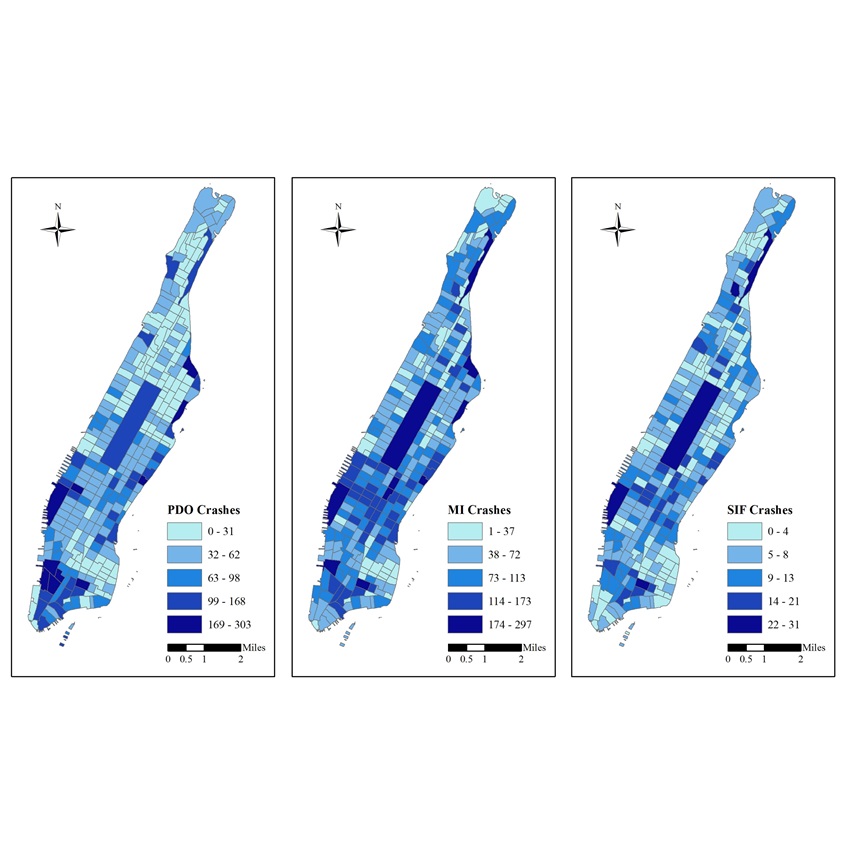 Abstract : In recent years, the New York City metropolitan area was hit by two major hurricanes, Irene and Sandy. These extreme weather events disrupted and devastated the transportation infrastructure, including road and subway networks. As an extension of the authors’ recent research on this topic, this study explored the spatial patterns of infrastructure resilience in New York City with the use of taxi and subway ridership data. Neighborhood tabulation areas were used as the units of analysis. The recovery curve of each neighborhood tabulation area was modeled with the logistic function to quantify the resilience of road and subway systems. Moran's I tests confirmed the spatial correlation of recovery patterns for taxi and subway ridership. To account for this spatial correlation, citywide spatial models were estimated and found to outperform linear models. Factors such as the percentage of area influenced by storm surges, the distance to the coast, and the average elevation are found to affect the infrastructure resilience. The findings in this study provide insights into the vulnerability of transportation networks and can be used for more efficient emergency planning and management.